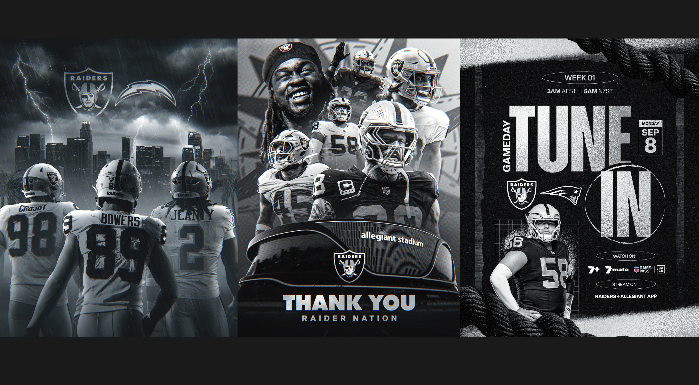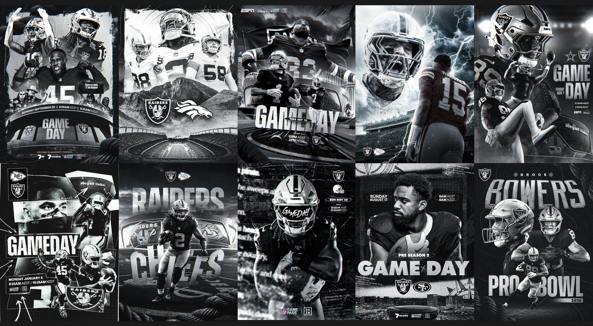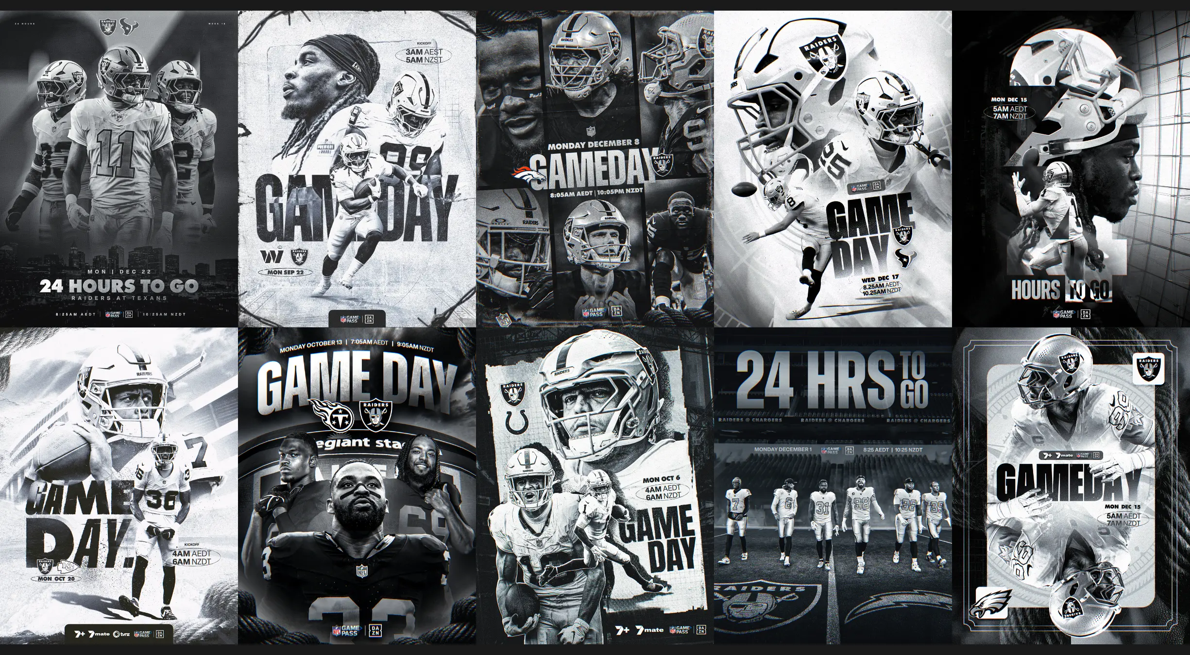 Early in the season, we shared a few graphics. No big pitch, no formal proposal... just some concepts we'd been sitting on. The Raiders liked what they saw, and just like that, the scope expanded. We were given the green light to produce hype graphics across the 2025/26 NFL season alongside our social media management work.